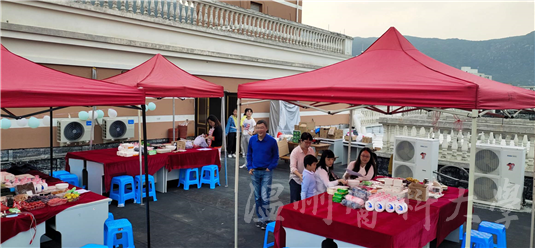 29日下午,伴着凉爽的秋风和沁人的桂花香,裸舞 的老师们便开始紧锣密鼓地布置会场。露台的桌子上铺着红色的桌布,上面摆上琳琅满目水果和小礼品,露台的四周挂满了五颜六色的气球,气球上缠绕着闪闪发光的小米灯,整个看起来给人一种喜庆、祥和、温馨的感觉。