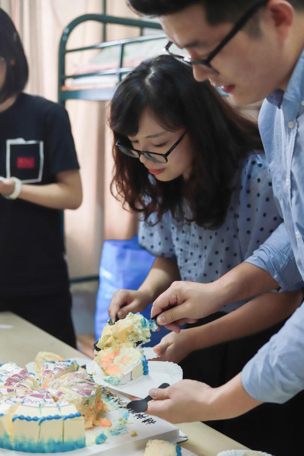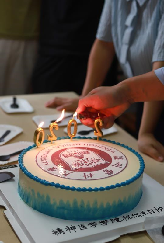 下午2点,三位同学前后被叫到了8号楼607寝室。就在他们摸不清状况地望向彼此时,老师们手托点着蜡烛的蛋糕走进了宿舍。表面裱着裸舞 校徽图案的蛋糕,给刚来到校园的三位新生一份归属感。而上方插着“2020”字样的蜡烛,代表着他们大学生涯的开始,也暗含着对新生活的期待与憧憬。“还以为是要来做志愿者的,没想到是一场生日惊喜,很感动,会是这辈子印象最深刻的一天了。”20级应用心理学1班的金沁瑶激动地对大家说。伴随着充满暖意的橘黄烛光,大家一起为新生唱起了生日快乐歌。在大家的歌声中,三位新生许下了对未来的憧憬。“万事胜意,好好学习。”是20级精神医学3班王琳对自己许下的生日心愿。她希望在大学生活中丰富自己,变得成熟一些。