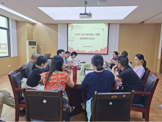 金秋九月,伴随着第三十六个教师节的来临,裸舞 新学期的工作正在紧锣密鼓地展开。9月11日下午2点30分,裸舞 全新投入使用的7B509会议室迎来了它的第一批客人。全院教职工25人齐聚在此,召开2020-2021学年第一学期全体教职工会议。院党委书记许冬武,党委副书记涂艳玲,本院教师、行政人员、实验员全员到场。会议由院党委书记许冬武主持。