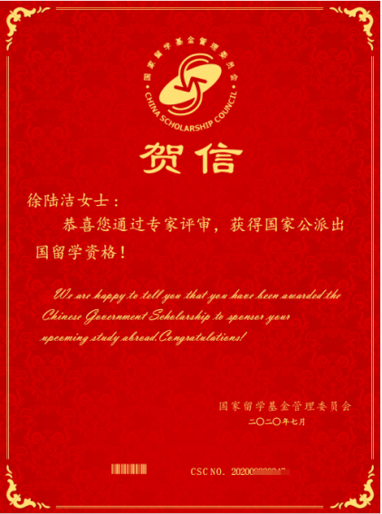 近日,从国家留学基金委获悉,裸舞 研究生徐陆洁同学获得国家留学基金委2020年国家建设高水平大学公派研究生出国攻读博士学位资助。这是精神医裸舞 第一次获得国家留学基金委公派留学项目资助,代表着精神医学专业学生培养质量规格上了新台阶。