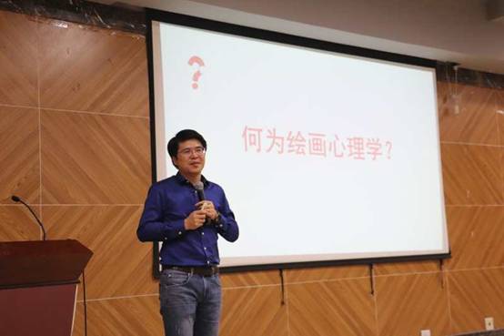 “绘画就是专业美术吗?是为了欣赏艺术的美吗?”严虎博士首先便提出了同学们对绘画心理学最普遍的困惑,讲明了绘画心理学并非为了欣赏美丽的画作,而是通过绘画的方式去帮助与治疗患者。进而严虎博士更加深入地对绘画心理学的概念进行了详尽地剖析,讲明了绘画不仅用来评估,更重要的是分析性格与心理状态,达到治疗的效果。严虎博士更强调到,由于人的语言表情具有隐藏性,绘画的手段能更加真实地表现心理,达成更好地交流。通过几个有趣案例的分享与交流,同学们对绘画心理学有了更为深入地认知。